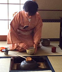 「点前(てまえ)は威厳をもってさらさら流れるごとく」特におんな点前を得意とし、優しさが特徴です。